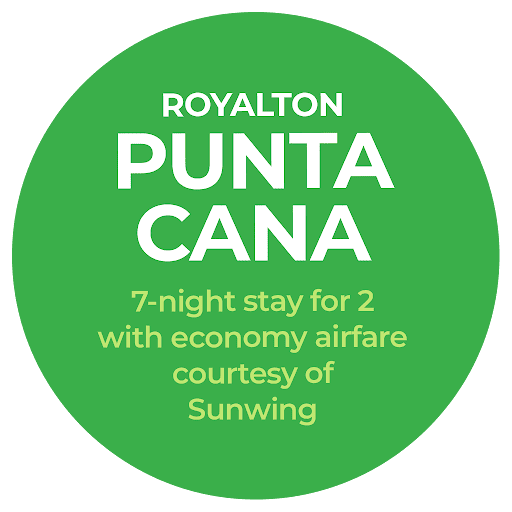- (i) round-trip economy airfare Park’N Fly for two adults onboard Sunwing Airlines for a 7-night stay at the Royalton Punta Cana and 8 days of airport parking at a Park’N Fly location (approx. retail value: $4,800);