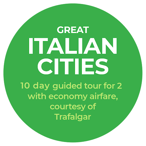 - (iv) a 10-day Great Italian Cities land tour with airfare for two booked through Trafalgar and 8 days of airport parking at a Park’N Fly location (approx. retail value: $10,200);