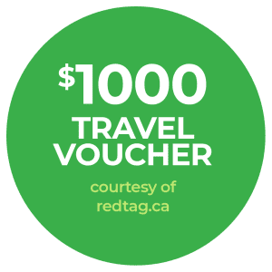 - (v) a $1000 travel voucher redeemable for travel booked on redtag.ca and 8 days of airport parking at a Park’N Fly location (approx. retail value: $1100).